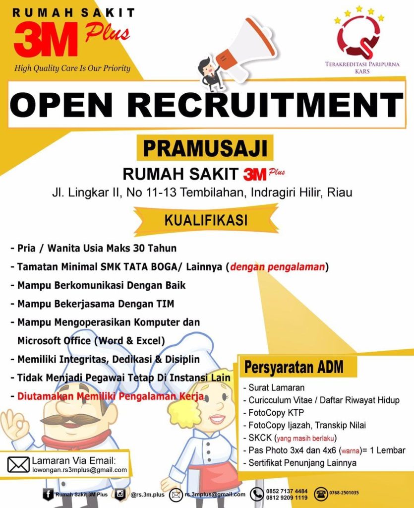 ARB INdonesia, INDRAGIRI HILIR – Rumah Sakit 3M Plus Tembilahan, Kabupaten Indragiri Hilir (Inhil) kembali membuka lowongan pekerjaan (Lowker) bagi siapa saja yang memiliki keahlian di bidang yang dibutuhkan.
