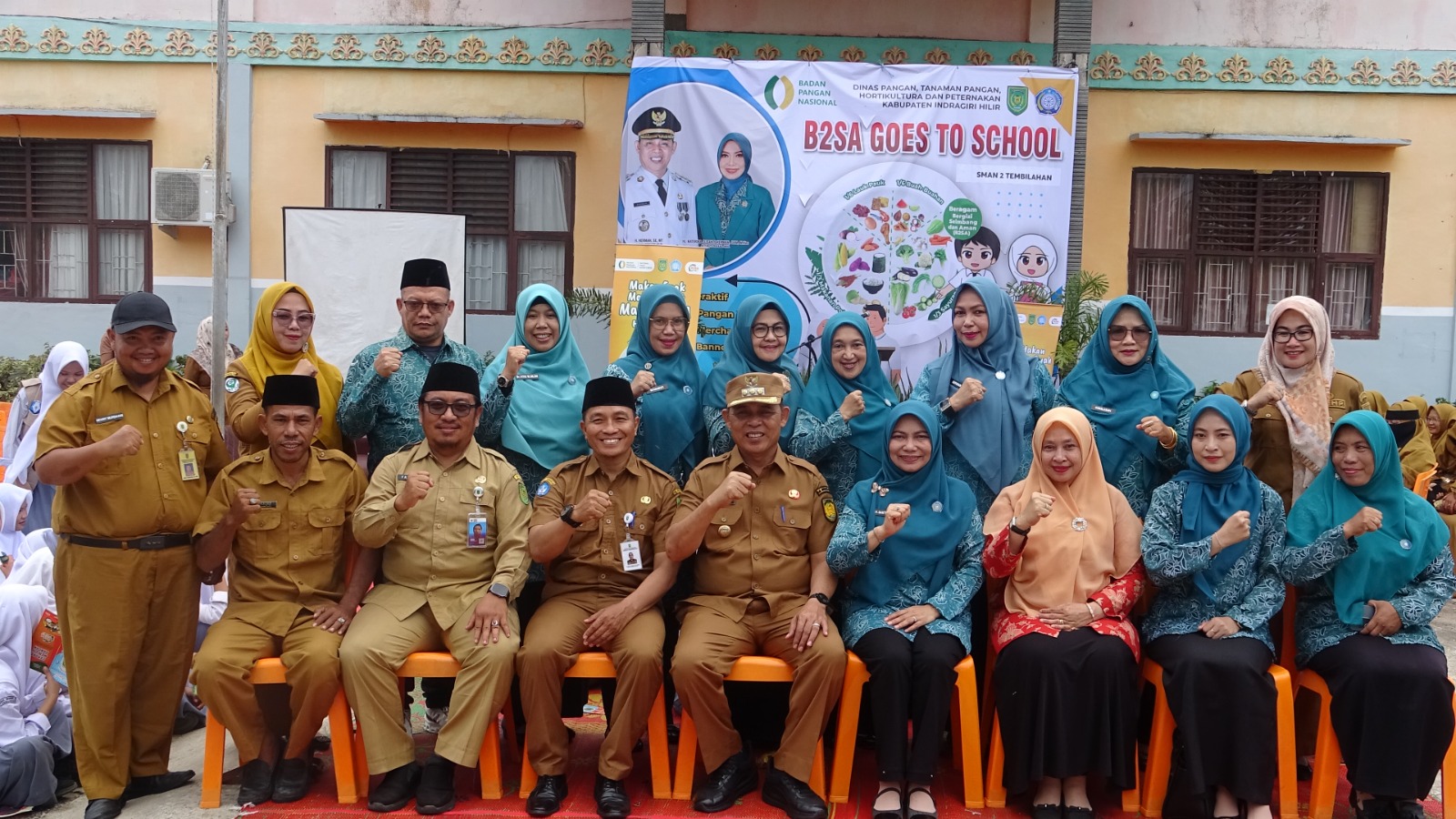 Salah satu upaya yang dilakukan adalah dengan melaksanakan program Beragam Bergizi Seimbang dan Aman (B2SA) Goes to School yang digelar di SMA Negeri 2 Tembilahan.Giat yang berlangsung Selasa (22/7) pagi tersebut dibersamai langsung oleh Bupati Inhil Herman, Ketua Tim Penggerak PKK Katerina Susanti, serta unsur terkait lainnya.
