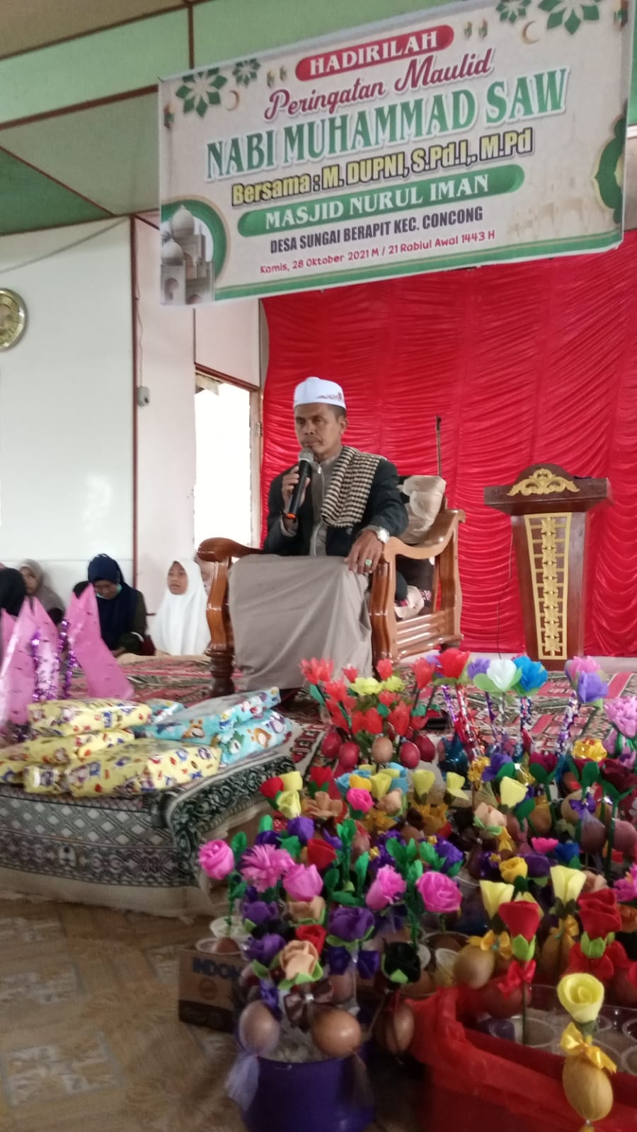 ARBIndonesia.com, INDRAGIRI HILIR – Pengurus Masjid Nurul Iman di Desa Sungai Berapit, Kecamatan Concong, Kabupaten Indragiri Hilir (Inhil) menyelenggarakan peringatan Maulid Nadi Muhammad SAW, Kamis (28/10/2021).