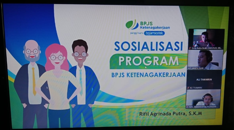 ARB INdonesia, INDRAGIRI HILIR – Melalui zoom meeting, BPJS Ketenagakerjaan melakukan sosialisasi kepada SDM PKH diseluruh Kabupaten Indragiri Hilir (Inhil).