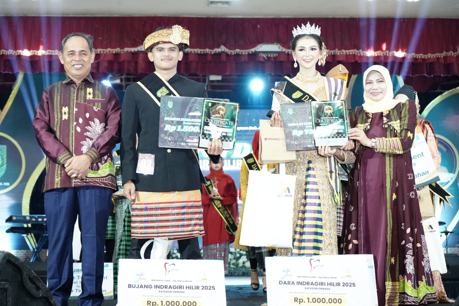 Selain terpilihnya Muthia Wulan Risyada sebagai Dara Inhil dan Diko Suwitra selaku Bujang Inhil 2025, yang tak kalah menarik perhatian penonton ialah peragaan yang ditampilkan Bupati Herman dan Ketua Dekranasda dengan mengenakan kain tenun dan batik khas Inhil.