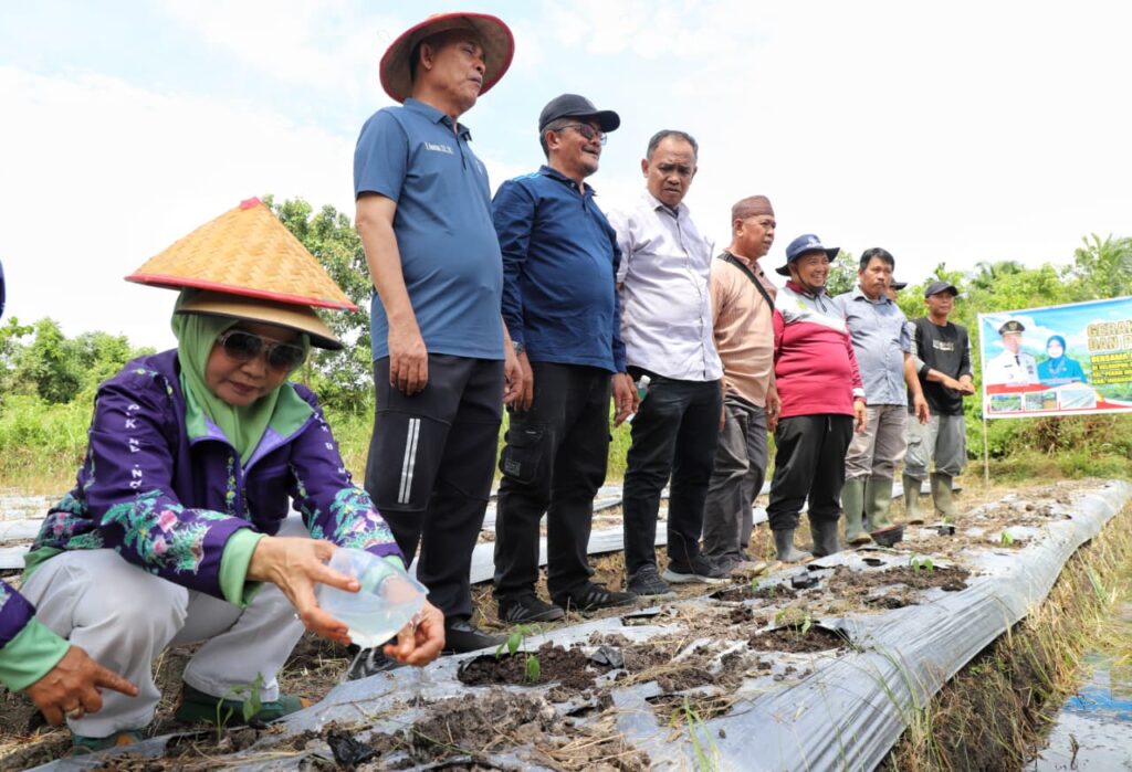 Riaubermarwah.com – Tembilahan, 19 Oktober 2025 – Bupati Inhil H. Herman bersama Ketua TP PKK Inhil Hj. Katerina Susanti Herman dan beberapa Kepala Dinas menghadiri secara langsung kegiatan Tanam dan Panen Cabai yang diselenggarakan oleh Kelompok Tani Gemah Ripah di Kelurahan Pekan Arba, Kecamatan Tembilahan, Kabupaten Indragiri Hilir.