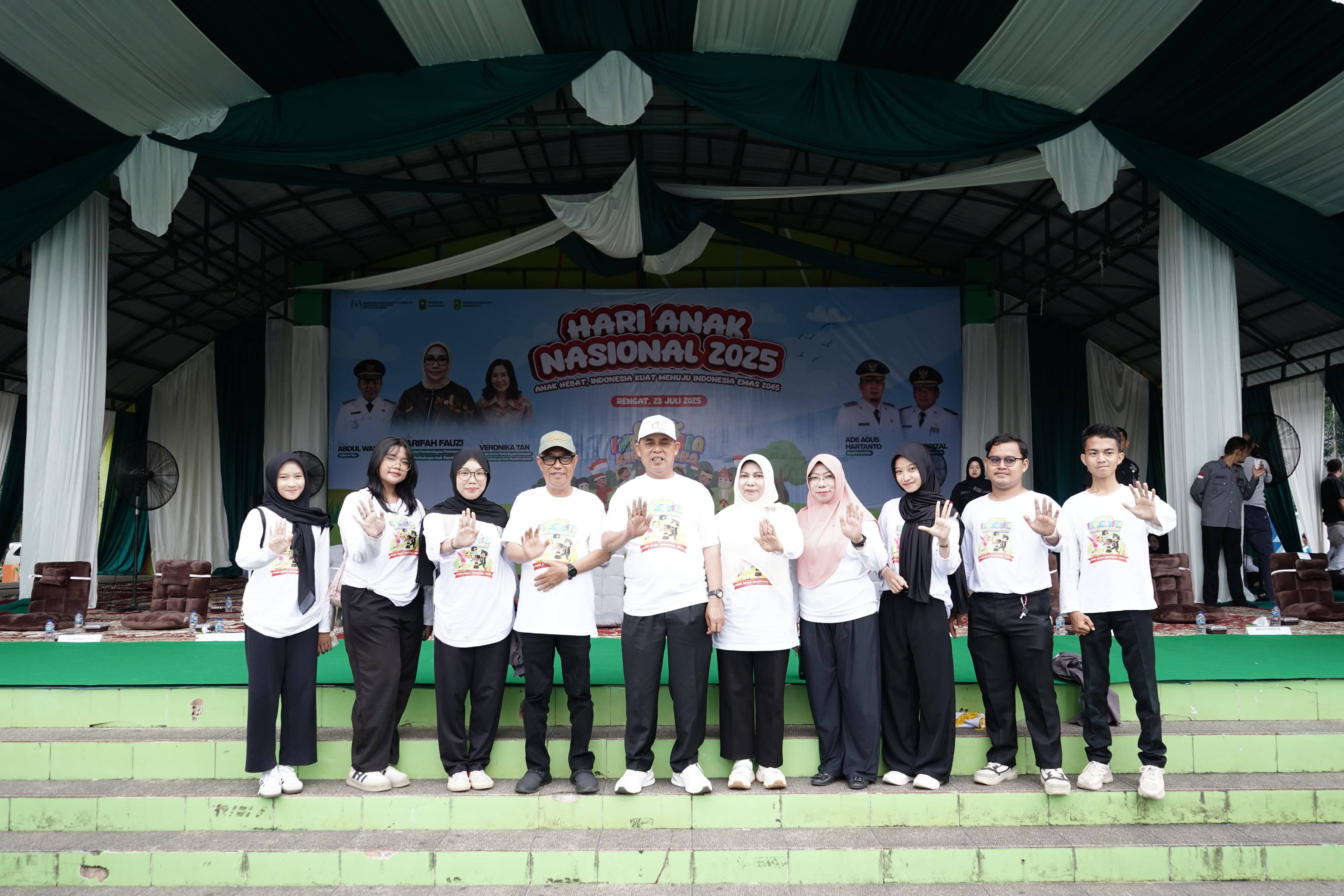 Riaubermarwah.com – RENGAT, – Bupati Indragiri Hilir, H. Herman, SE, MT, menghadiri langsung Peringatan Hari Anak Nasional (HAN) ke‑41 yang dipusatkan di Ruang Terbuka Hijau (RTH) Hijau, Kota Rengat, Kabupaten Indragiri Hulu, Rabu (23/07/2025). Dalam kesempatan itu, beliau turut didampingi oleh Bunda PAUD Kabupaten Inhil, Hj. Katerina Susanti Herman, serta Kepala Dinas P2KBP3A Kabupaten Inhil.