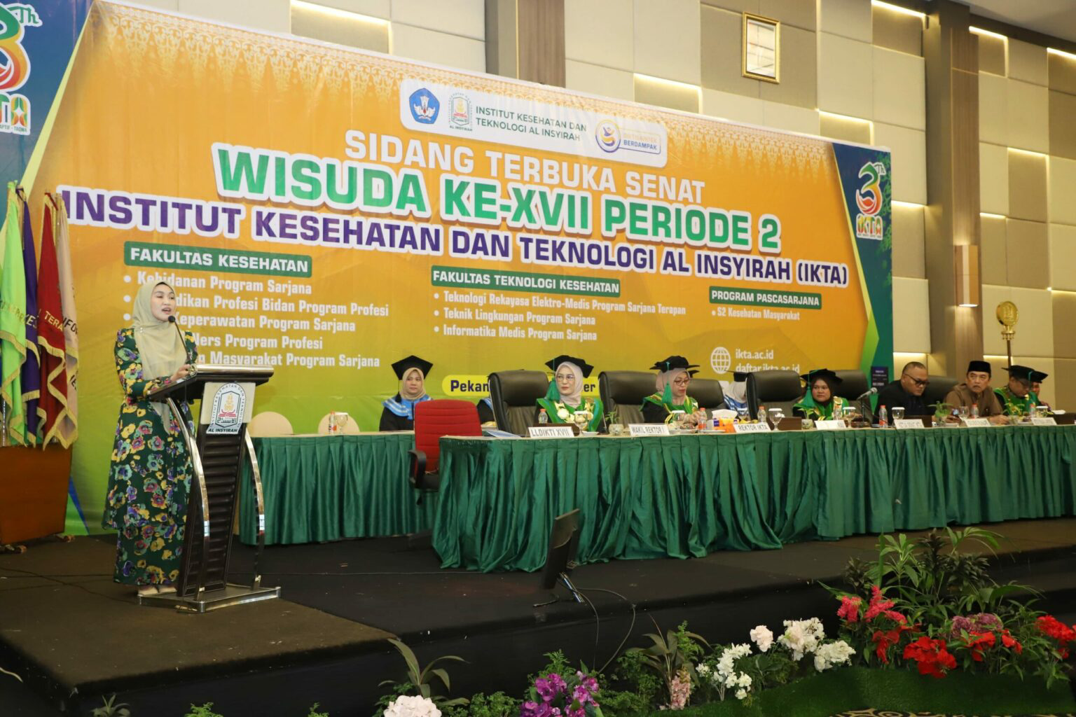 Turut hadir dalam kesempatan ini, Kepala LLDIKTI wilayah XVII, Dr. H. Nopriadi, SKM, M.Kes, Gubernur Riau yang diwakili oleh Plh. Kadis Kesehatan Provinsi Riau, Ketua TP PKK Provinsi Riau, Henny Sasmita Wahid, Rektor IKTA, Ketua Yayasan Al Insyirah, para dosen, orang tua wisudawan, serta tamu undangan lainnya.