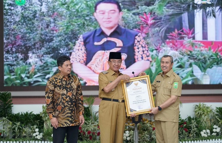 Piagam penghargaan tersebut diterima Bupati HM WARDAN pada saat acara peluncuran Launching Jaminan Kesehatan Semesta Universal Health Coverage (UHC) Provinsi Riau di gedung pauh janggi Pekanbaru Senin (16/10/2023).
