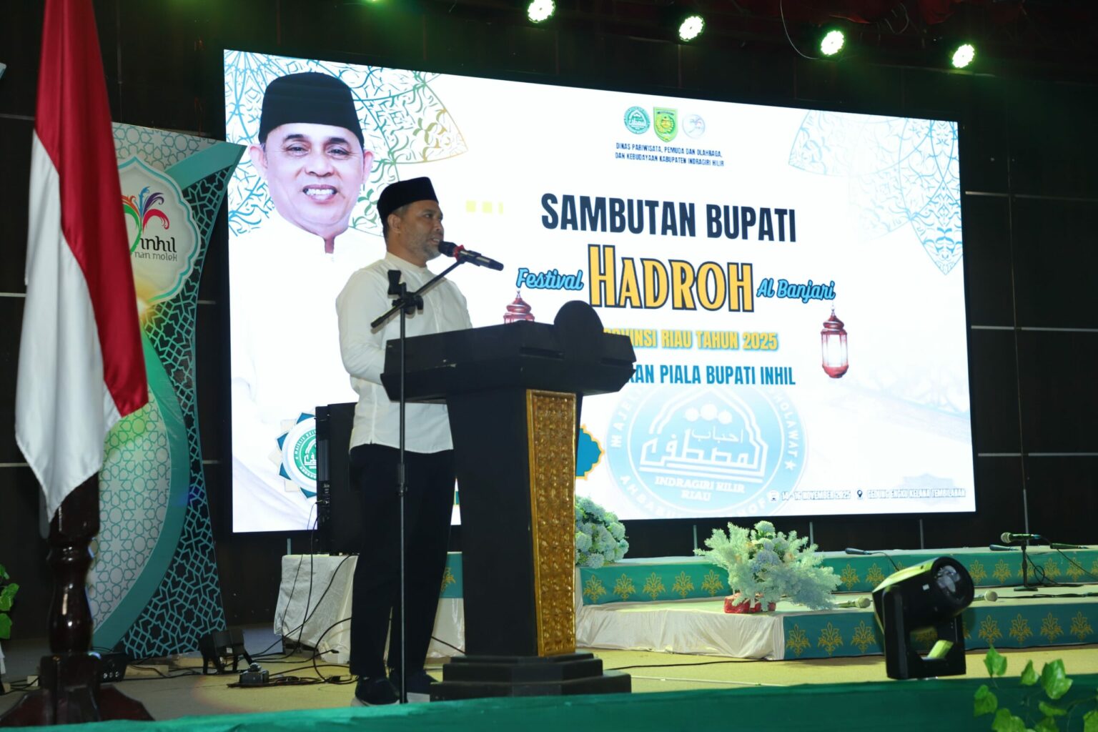 Riaubermarwah.com – Mewakilkan Bupati Indragiri Hilir, Staf Ahli Bupati Bidang Kemasyarakatan dan SDM H. Muammar Gaddafi membuka Festival Hadroh Al-Banjari se Prov. Riau Th. 2025, Jum’at (14/11/2025).