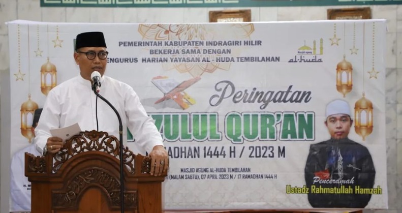 ARB INdonesia, INDRAGIRI HILIR – Bupati Indragiri Hilir yang diwakili Asisten Pemerintahan dan Kesejahteraan Rakyat Setda Kab. Inhil H. Tantawi Jauhari menghadiri peringatan Nuzulul Qur’an 1444H di Masjid Agung Al – Huda, Jl. Jend. Sudirman Tembilahan yang disejalankan dengan pengukuhan pengurus harian yayasan Al – Huda Tembilahan untuk masa bhakti 2023 – 2028, Jum’at (07/04/2023) malam.