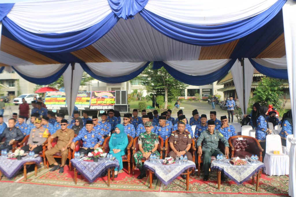 Upacara yang berlangsung di halaman Kantor Bupati tersebut dihadiri Forkopimda, Sekda, Staf Ahli Bupati, para Asisten, Kepala OPD, Ketua TP PKK Inhil, serta organisasi wanita dan tamu undangan lainnya.