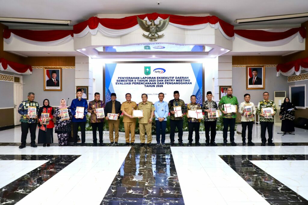 PEKANBARU – Bupati Indragiri Hilir (Inhil), H. Herman, S.E., M.T., menghadiri acara Penyerahan Laporan Eksekutif Daerah Semester II Tahun 2025 sekaligus Entry Meeting Evaluasi Perencanaan dan Penganggaran Tahun 2026 yang digelar di Gedung Daerah Balai Pauh Janggi, Kompleks Kediaman Gubernur Riau, Pekanbaru, Kamis (5/3/2026).
