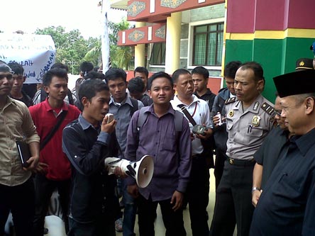 Puluhan aktivis PB HIPPMIH berdemo ke DPRD Riau. Mereka mengadukan hancurnya harga kelapa di...