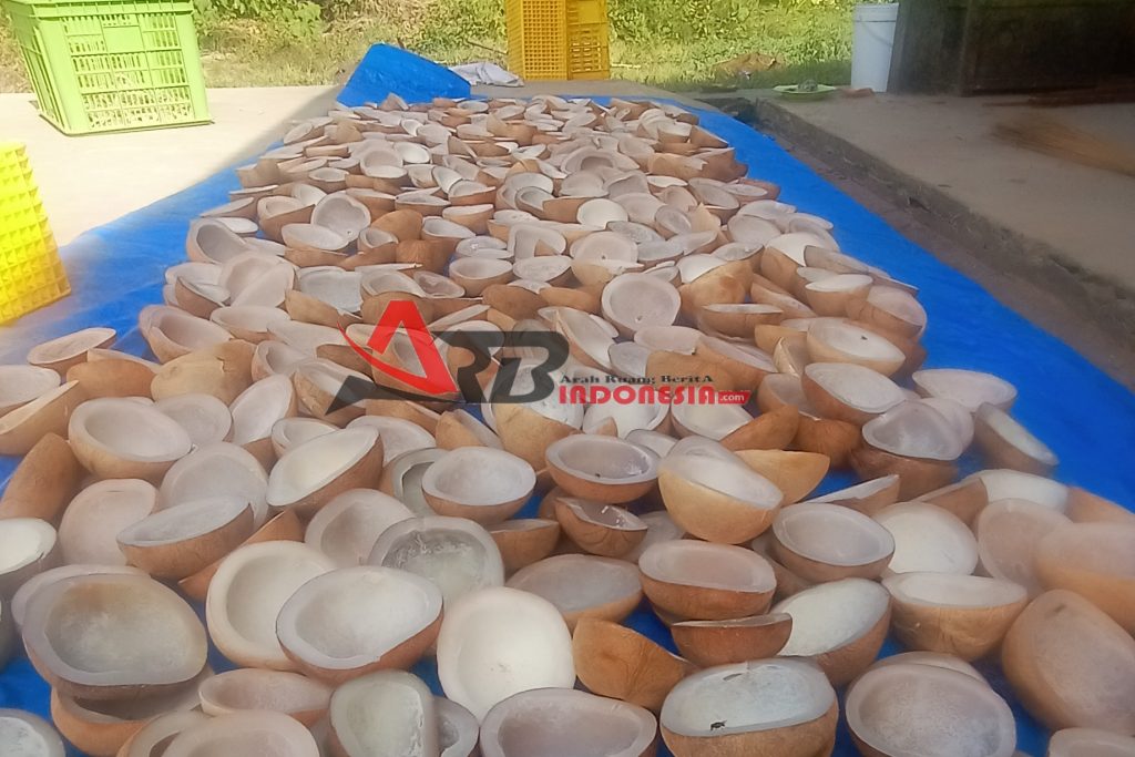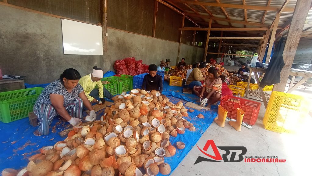 Kelapa yang disusun didalam tenda UVSejalan dengan program kerja TP PKK dalam peningkatan ekonomi keluarga, pengolahan kopra putih ini juga menjadi salah satu jawaban dalam peningkatan ekonomi melaui hasil perkebunan kelapa.