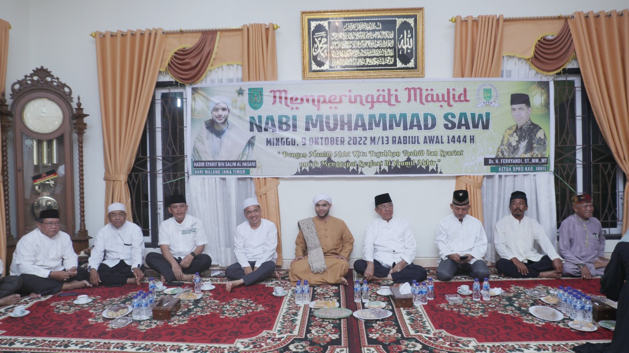 ARB INdonesia, INDRAGIRI HILIR – Ketua Dewan Perwakilan Rakyat Daerah (DPRD) Kabupaten Indragiri Hilir (Inhil) Dr. H. Ferryandi, ST, MT, MM menggelar peringatan Maulid Nabi Muhammad SAW 1444 H / 2022 M, Minggu (9/10/2022) malam.