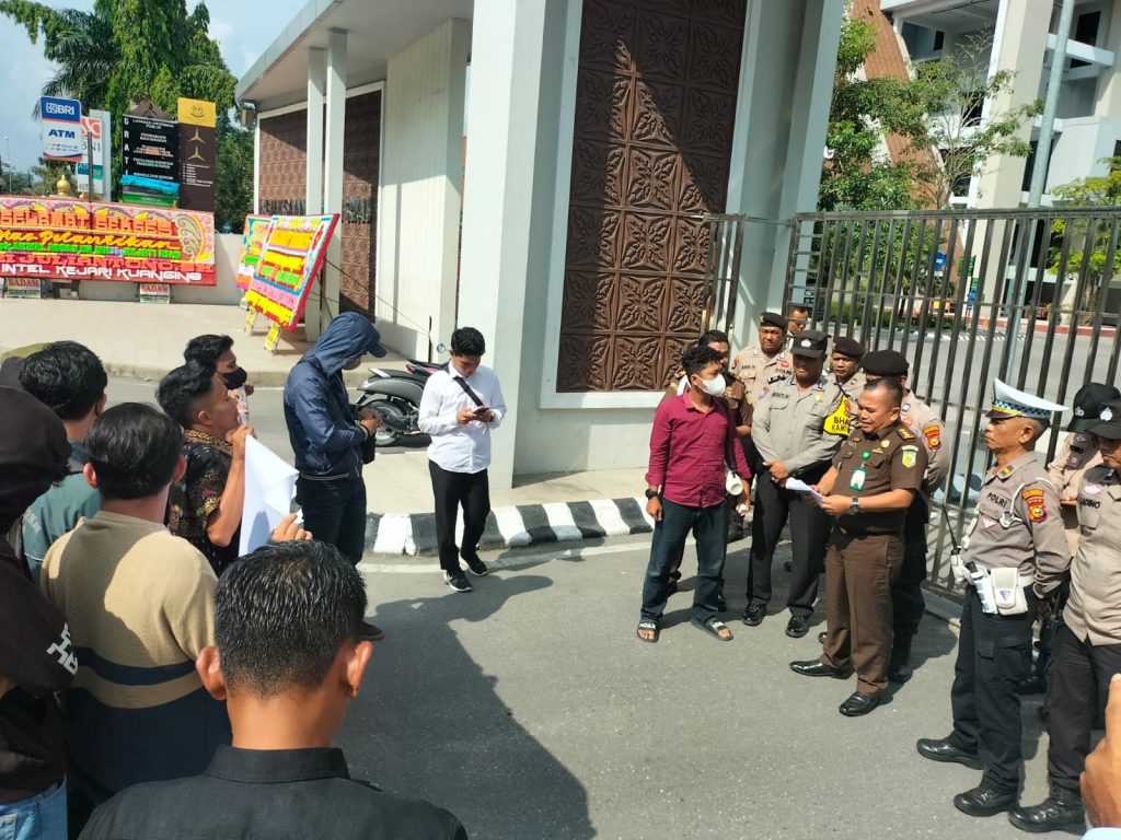 ARB INdonesia, PEKANBARU – Puluhan Mahasiswa yang tergabung dalam Himpunan Pemuda Pemudi Indragiri (HPPI) Riau menggelar aksi unjuk rasa di depan Kantor Kejaksaan Tinggi (Kejati) Riau, Rabu (1/11/2023).