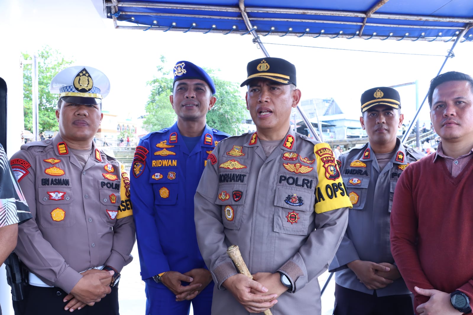 “Kapolres Inhil menyampaikan pesan-pesan Kamtibmas agar masyarakat selalu mematuhi aturan-aturan serta memperhatikan barang-barang bawaan dan keamanan pribadi serta keselamatan pada saat melaksanakan mudik dengan menggunakan Tranportasi Air,” tuturnya.