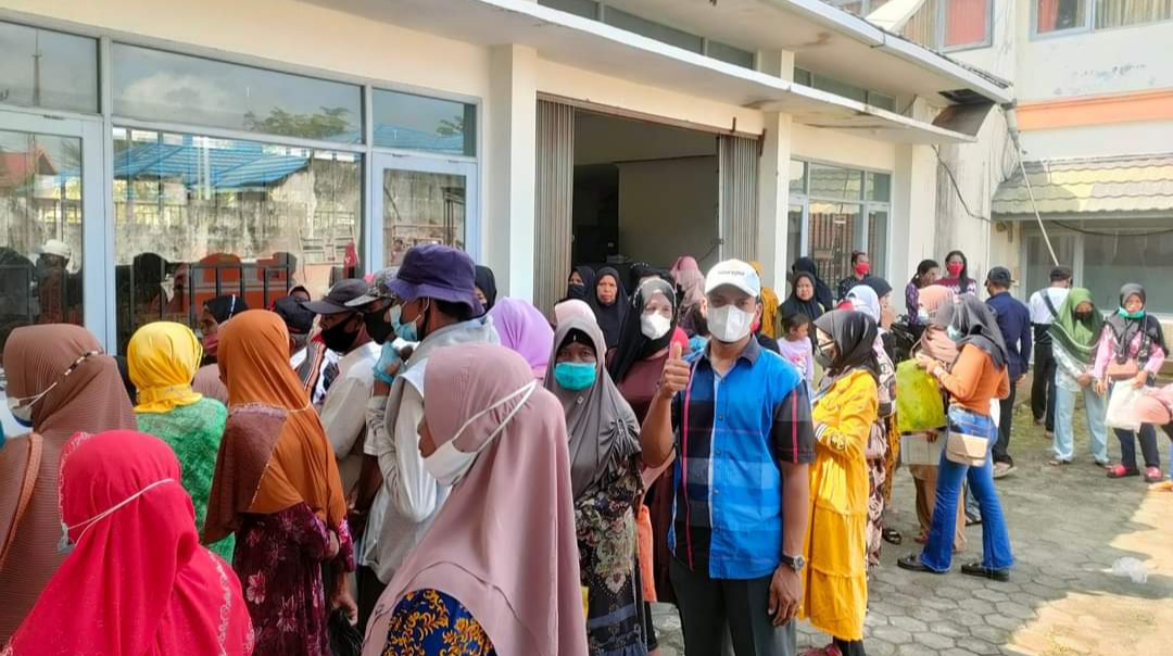 ARB INdonesia, INDRAGIRI HILIR – Kepala Desa Panglima Raja, Kecamatan Concong, Kabupaten Indragiri Hilir mendapangi masyarakat untuk mengambil Bantuan Sosial Sembako (BSS) di Kantor Pos Tembilahan, Rabu (23/2/2022).