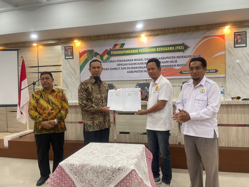 ARB INdonesia, INDRAGIRI HILIR – Kamar Dagang Industri (Kadin) Kabupaten Inhil hadiri Penandatangan MoU terkait perizinan bebas resiko yang diselenggarakan oleh Dinas Penanaman Modal dan Pelayanan Satu Pintu (DPMPTSP) Inhil di Harmona Inn Jl. Kartini, Rabu malam (20/9/2023).