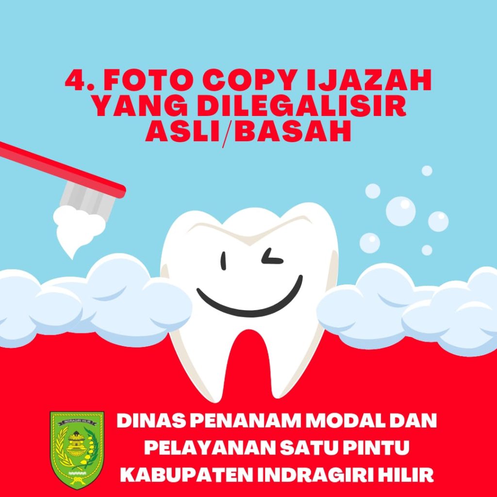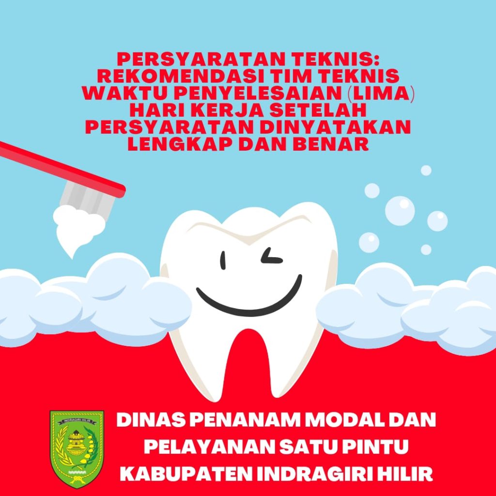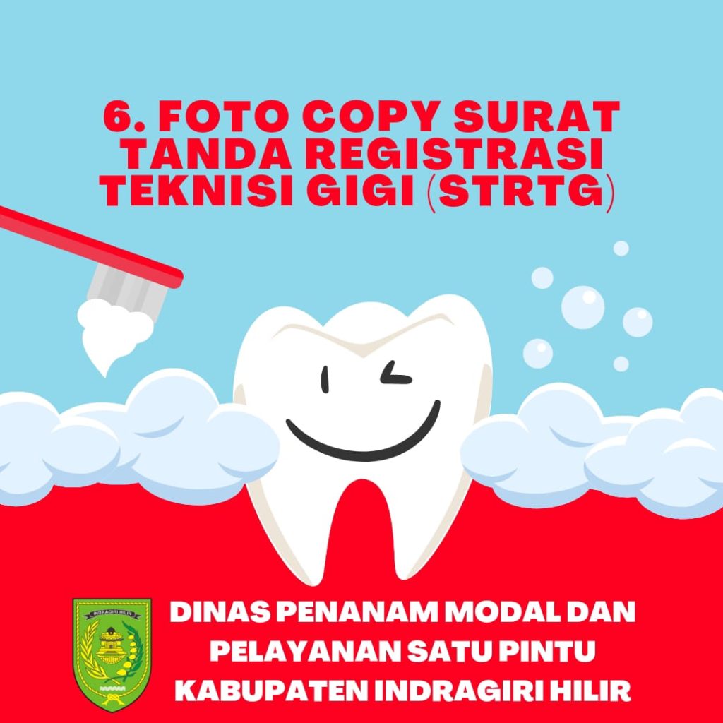 Untuk membuka praktik tentu tenaga profesional mempunyai Surat Izin Praktik Teknisi Gigi, Berikut Syarat dan Ketentuan yang Anda persiapkan untuk mengajukan ke Dinas Penanam Modal dan Pelayanan Satu Pintu Kabupaten Indragiri Hilir.