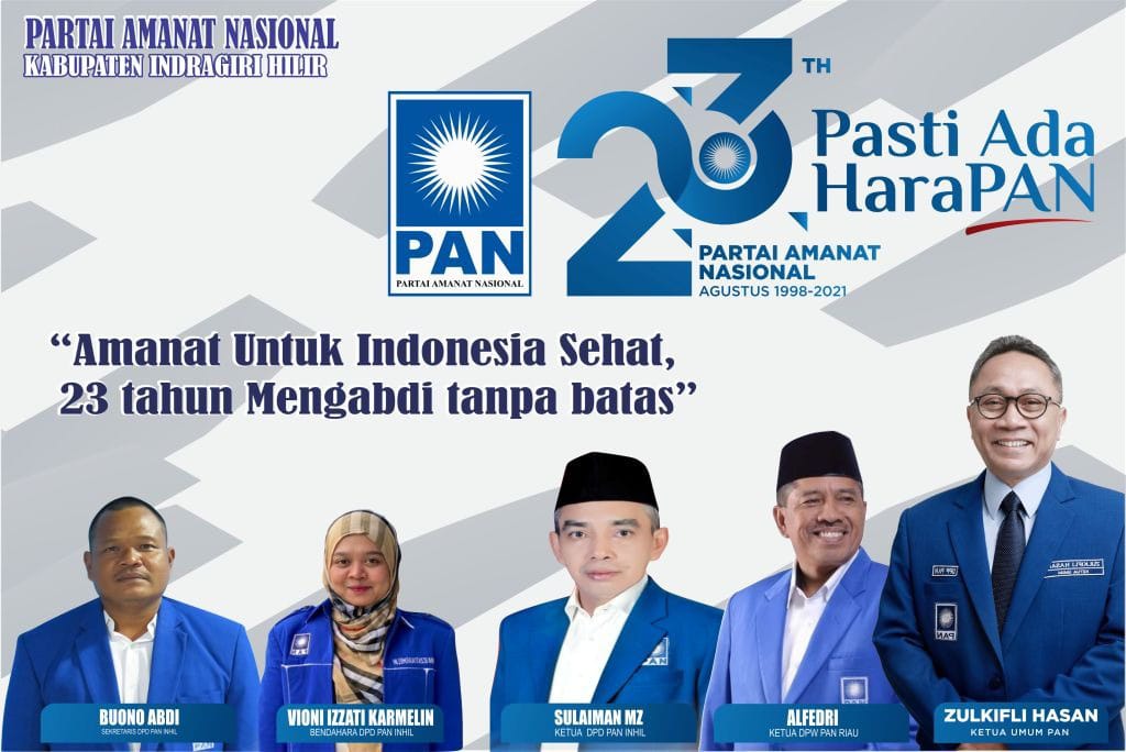 ARBIndonesia.com, INDRAGIRI HILIR – DPD Partai Amanat Nasional (PAN) Kabupaten Indragiri Hilir (Inhil) menggelar doa bersama dalam rangka syukuran bersempena hari lahir PAN ke-23, Senin (23/8/2021).