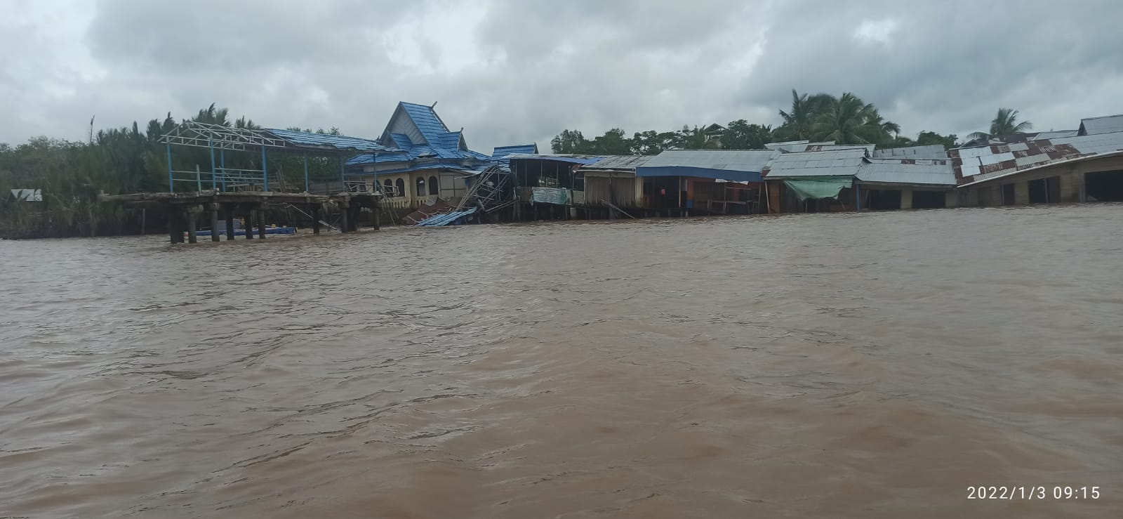 “Iya ada 11 rumah (rumah warung) dan satu dermaga (pelabuhan) yang ikut juga ambruk akibat longsor yang terjadi,” ungkap Irham Kepala Desa Teluk Dalam, Senin (3/1/2022) pagi.