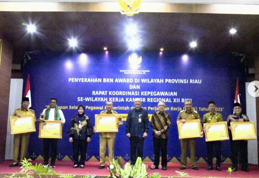 ARB INdonesia, PEKANBARU – Pemerintah Kabupaten Indragiri Hilir berhasil meraih Badan Kepegawaian Negara (BKN) Award tahun 2022. Penghargaan level nasional itu diterima pada kategori Penerapan Pemanfaatan Data Sistem Indormasi Dan Cat.