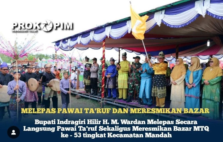 ARB INdonesia, INDRAGIRI HILIR – Bupati Kabupaten Indragiri Hilir (Inhil) HM Wardan didampingi Ketua TP. PKK Inhil Hj Zulaikhah Wardan melepas secara langsung Pawai Ta’ruf sekaligus meresmikan Bazar MTQ ke – 53 tingkat Kecamatan Mandah.