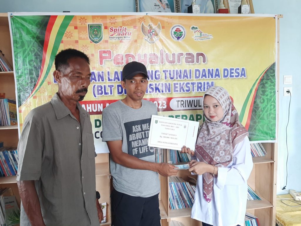 ARBIndonesia.com, INDRAGIRI HILIR – Sebanyak 24 Keluarga Penerima Manfaat (KPM) di Desa Sungai Berapit, Kecamatan Concong, Kabupaten Indragiri Hilir (Inhil) telah menerima Bantuan Langsung Tunai (BLT) Dana Desa (DD), Sabtu (26/8/2023).