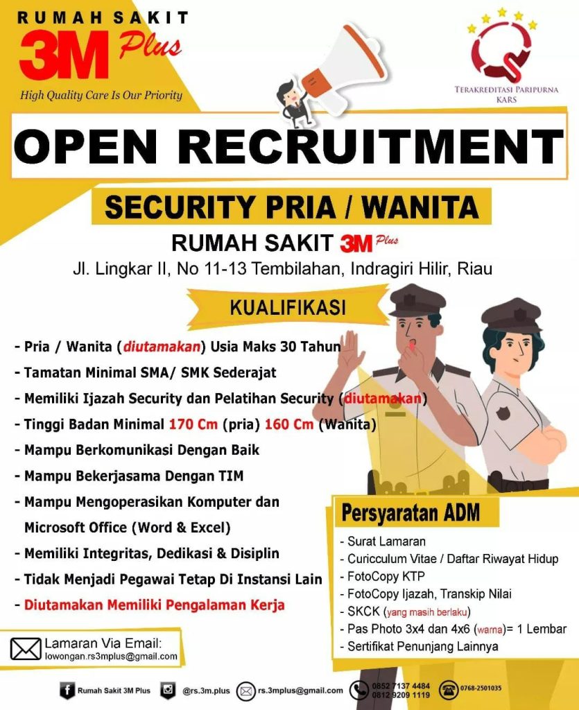Segera Daftar, RS 3M Plus Tembilahan Buka Lowker Untuk Security