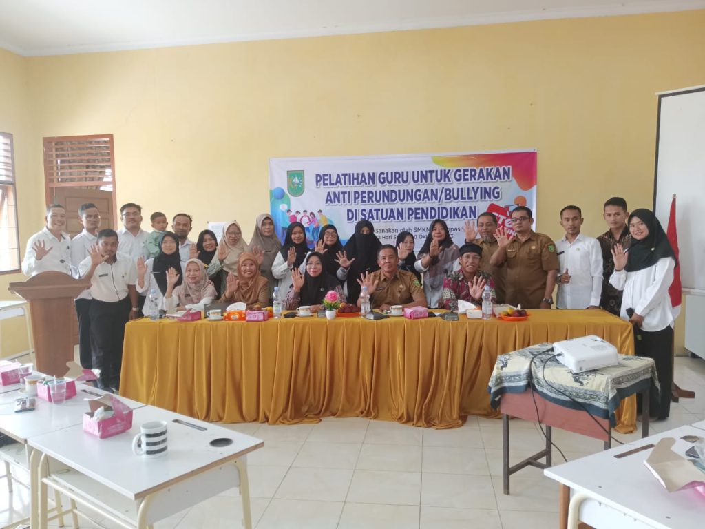 ARB INdonesia, INDRAGIRI HILIR -Melihat tingginya angka perundungan (bullying) di Indonesia, Sekolah Menegah Keguruan Negeri 2 Kempas gelar Pelatihan Anti Perundungan/Bullying. Kegiatan ini berlokasi di SMK N 2 Kempas dan diikuti oleh guru-guru SMK Negeri 2 Kempas, SLTP, MTs, dan SD di wilayah Desa Pekan Tua, Kecamatan Kempas, Selasa (10/10/23).