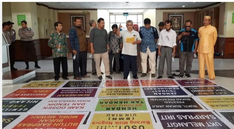 ARB INdonesia, PEKANBARU – Sejumlah dosen di Universitas Islam Negeri (UIN) Suska Riau menggelar aksi di gedung rektorat. Aksi itu sebagai bentuk protes karena adanya pemotongan tunjangan kinerja dosen.