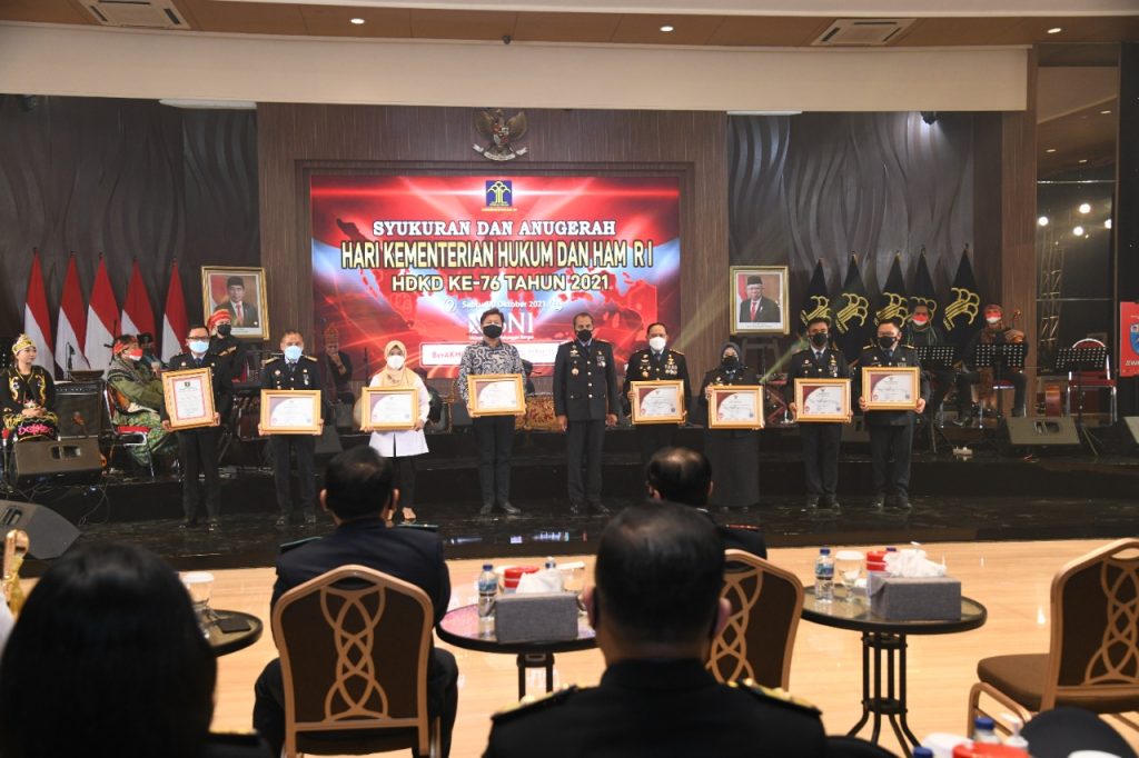 Pada kesempatan ini, Yasonna yang juga didampingi oleh Wakil Menkumham, Eddy O.S Hiariej dan Sekretaris Jenderal, Andap Budhi Revianto, serta para pimpinan tinggi madya dan pratama lainnya juga memberikan penghargaan dalam beberapa perlombaan.