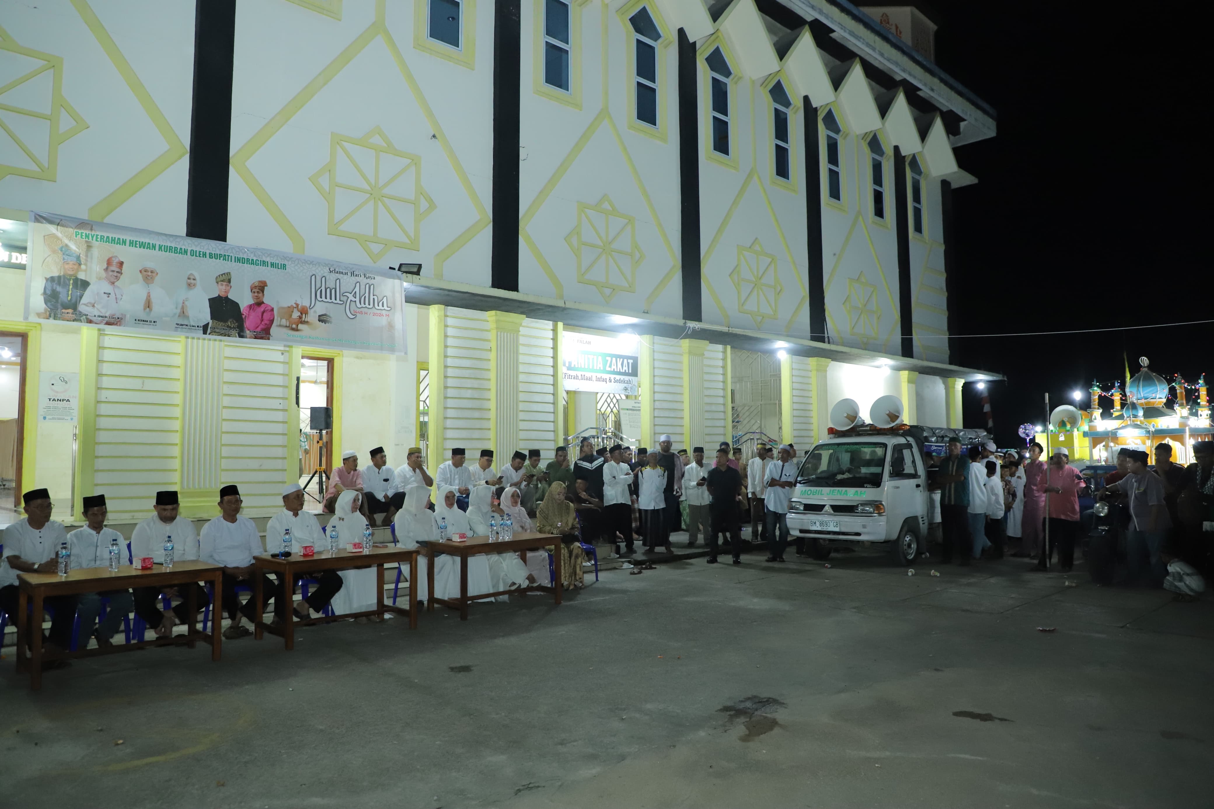 Alhamdulillah, segala puji bagi Allah SWT, Tuhan Semesta Alam. Qadarullah, saya bersama Ketua TP-PKK Ibu Hj. Katerina Susanti dan rombongan dapat bersilaturahmi serta merayakan malam takbiran Idul Adha 1446 H bersama masyarakat di Sungai Guntung, Kecamatan Kateman,” ujar Bupati Herman dalam sambutannya.
