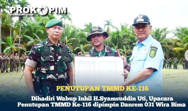 ARB INdonesia, INDRAGIRI HILIR – Kodim 0314 Inhil melaksanakan upacara penutupan TNI Manunggal Membangun Desa (TMMD) Ke-116 TA 2023 yang dihadiri Wakil Bupati Inhil H.Syamsuddin Uti di lapangan SMA Swasta Karya Pengalihan Keritang, Kamis (8/6/2023).